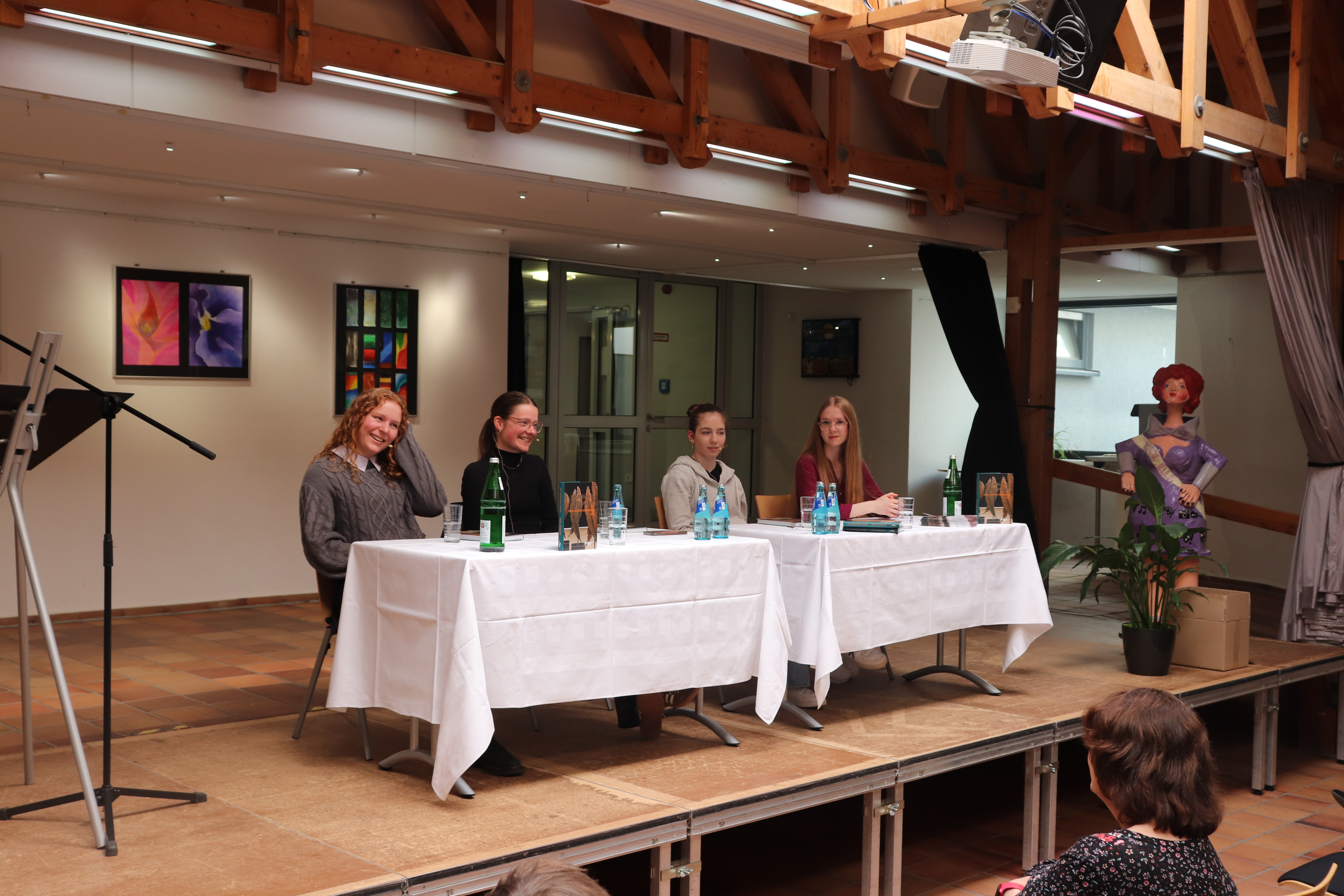 Zahlreiche Nachfragen zu den Erzählungen zeigten das rege Interesse der Schülerschaft an der literarischen Arbeit der Nachwuchsautorinnen, so wurden etwa Inspirationsquellen erfragt und Techniken des Schreibprozesses geschildert.