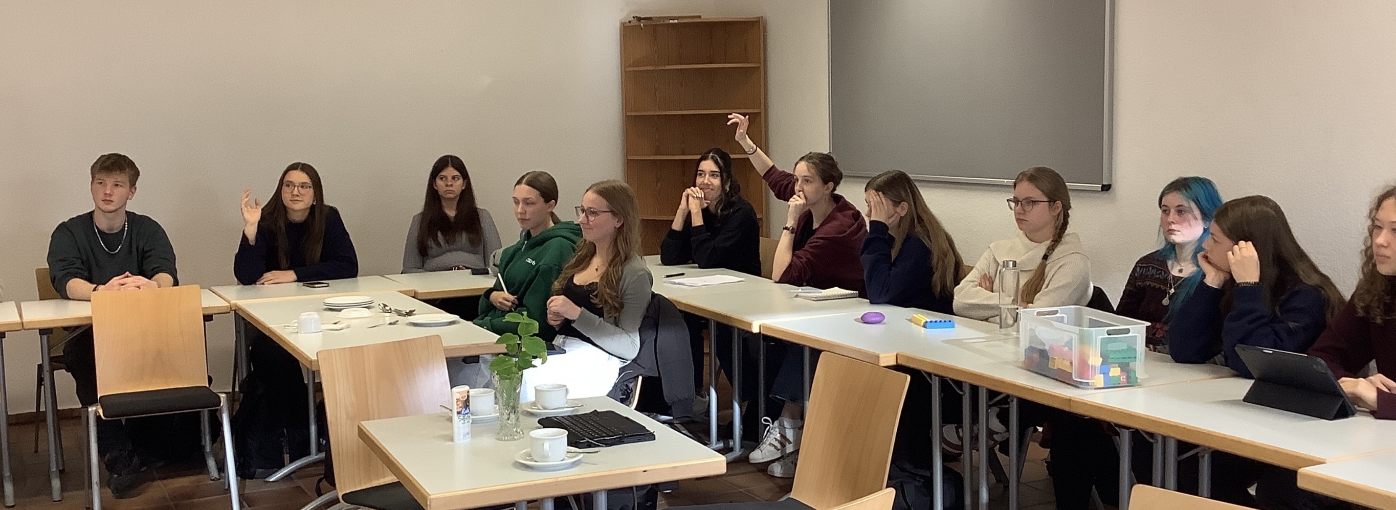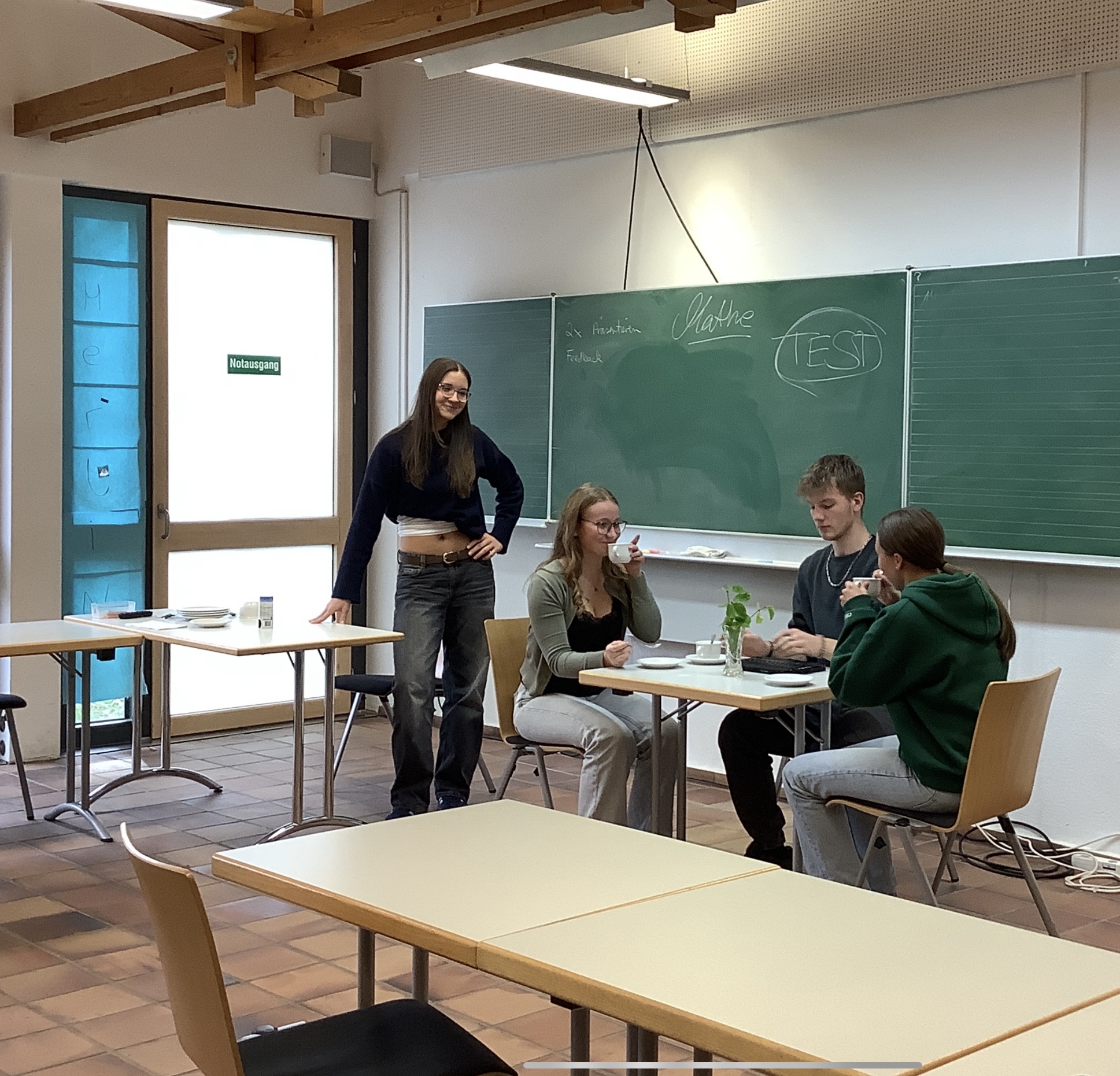 Im Bereich „Sprachen und Alltagswelt“ beschäftigten sich die Schülerinnen und Schüler unter Leitung von Ulrike Castro – Leduc mit stressfreier und effizienter Prüfungsvorbereitung. Zu Gast war dabei Entspannungspädagogin Tatjana Hense, die den gezielten Einsatz von Entspannungstechniken vermittelte und effektive Methoden zur Prüfungsvorbereitung vorstellte. Auch ging es um Bewältigungsstrategien bei Prüfungsängsten, Techniken zur Vermeidung von Blackout – Situationen sowie Zeitmanagement und Motivationstechniken. Tipps zur Optimierung von Körpersprache bei mündlichen Prüfungen, Konzentrationsübungen sowie Empfehlungen für eine leistungssteigernde Ernährung rundeten den vielfältigen Nachmittag ab.
