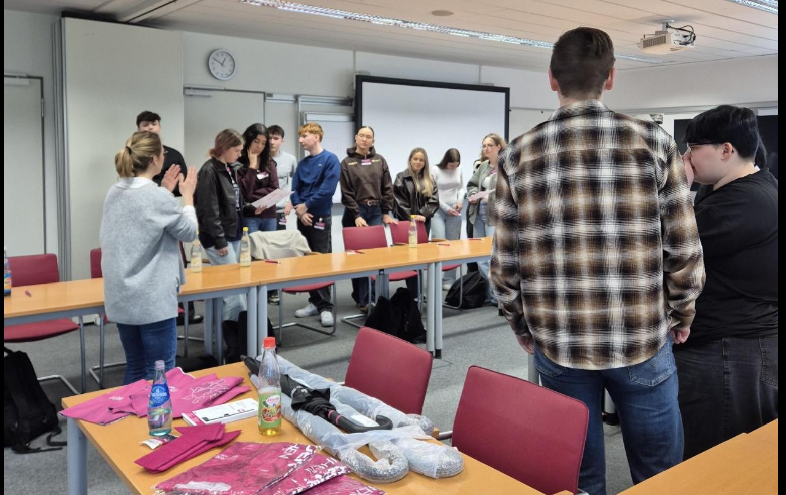 Das Profil „Sprachen und Arbeitswelt“ machte unter Leitung von Tanja Skorpil und Ferida Kaplan eine Exkursion zur Firma Römheld, wo die Schülerinnen und Schüler die Geschäftssprache Englisch im internationalen Wirtschaftsgeschehen kennenlernten. Sie trainierten typische Gesprächssituationen aus dem Arbeitsalltag wie Meetings oder Telefonate und entwickelten mit großer Begeisterung englische Online-Werbung für Social Media. Bei der anschließenden Besichtigung der Firma lernten sie die Abläufe und Kommunikationswege in einem weltweit tätigen Unternehmen kennen.