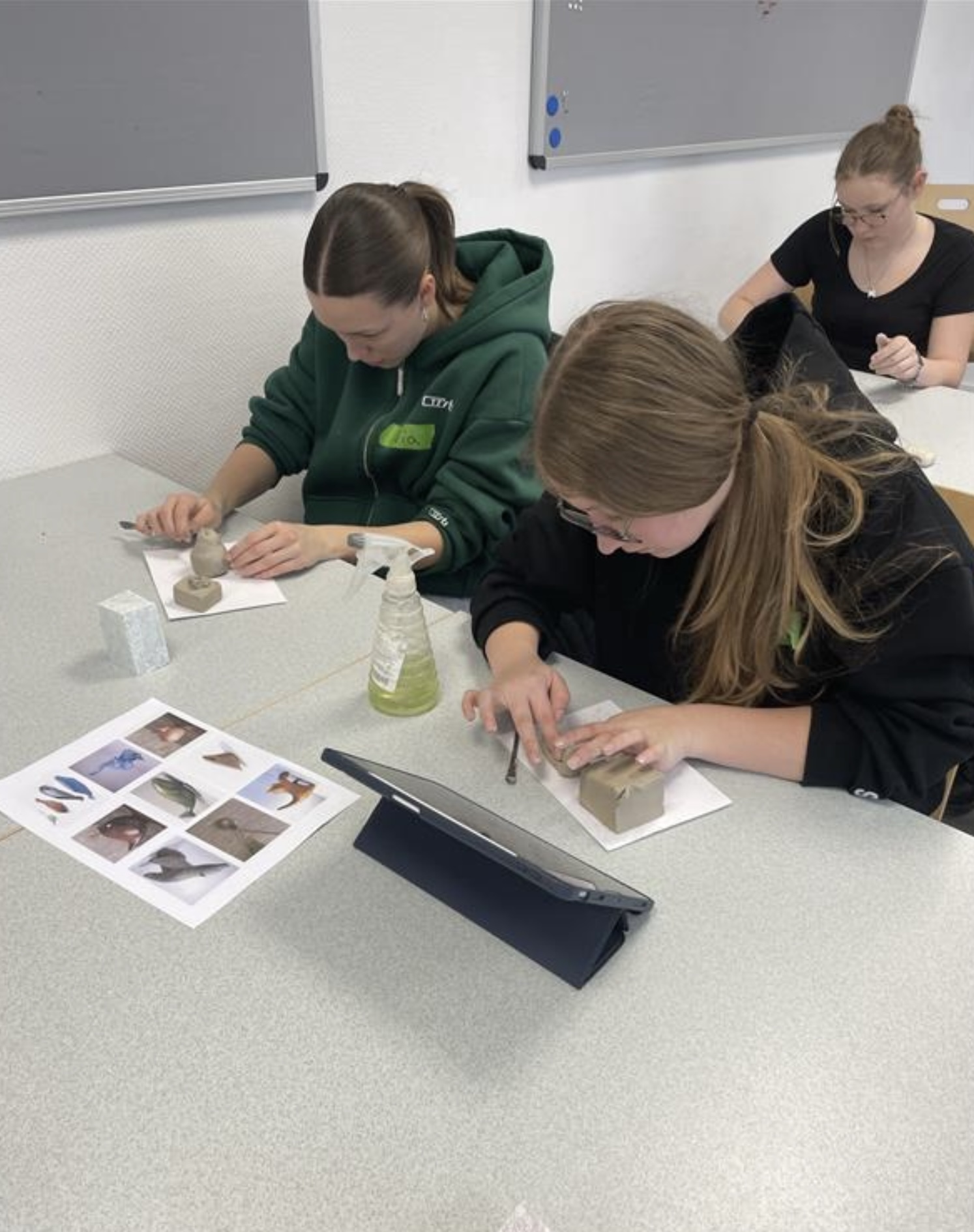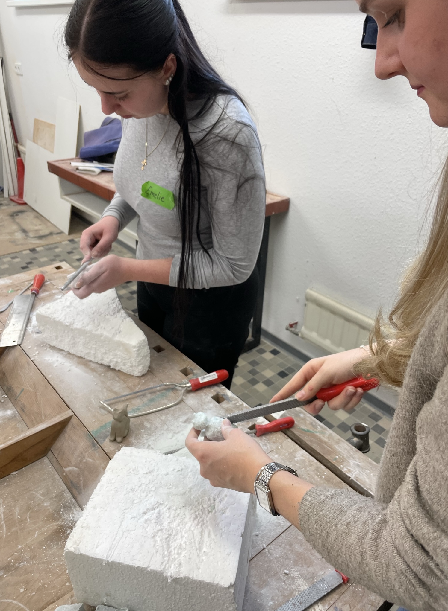 Im Bereich „Kultur“ hieß es unter Leitung von Silke Böhm und Lars Korten „Kreativ sein – von der Idee bis zum kleinen Kunstwerk“. Die Schülerinnen und Schüler lernten dabei je nach Wahl neue Kreativtechniken in den Bereichen Bildhauerei, Filmen und Schreiben kennen und konnten nach einer jeweils kurzen theoretischen Einführung eigene Arbeiten je nach Interessenlage anfertigen. So wurden zum Bespiel im Bereich Bildhauen aus Speckstein fertige Produkte wie Handschmeichler erstellt und im Bereich Film Storyboards erstellt, bevor mit Dreharbeiten, Schnitt und Vertonung für den Trailer eines spannenden Thrillers begonnen wurde.