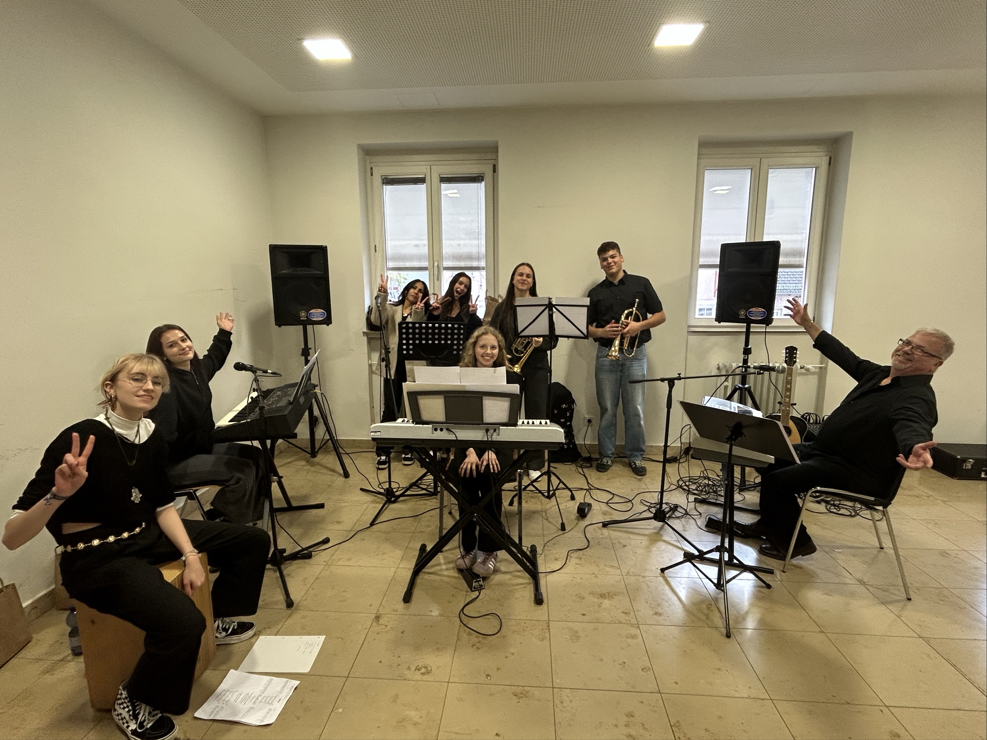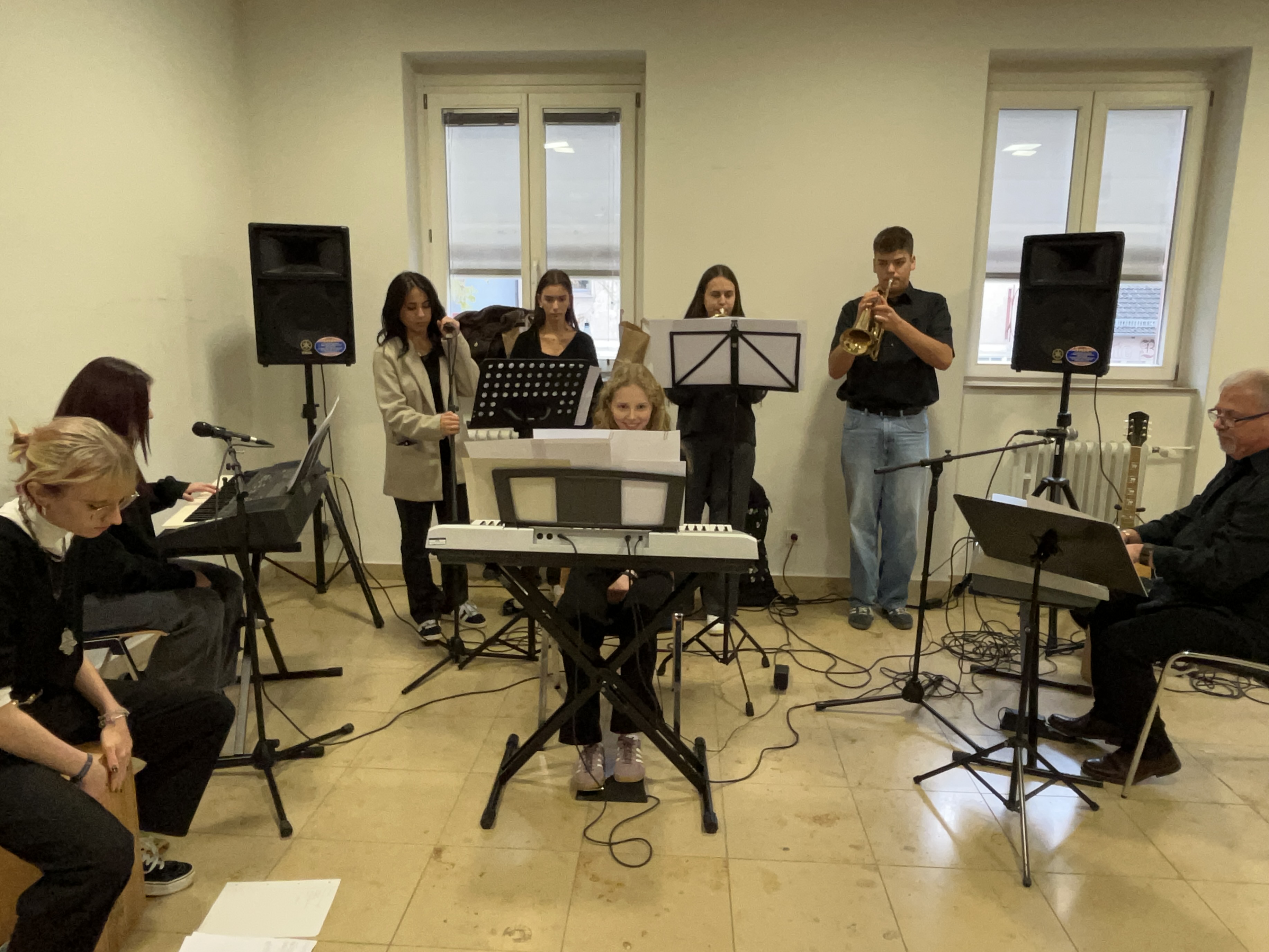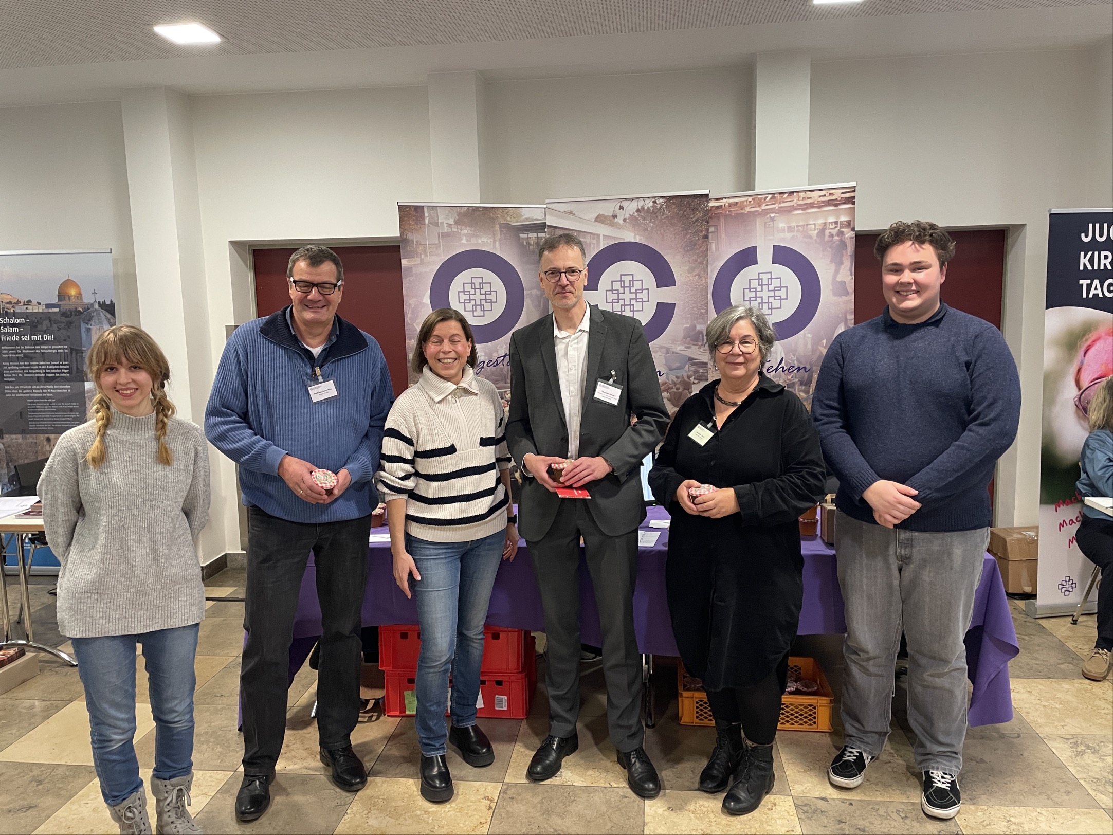 Auch in diesem Jahr besuchte wieder eine Gruppe des Laubach-Kollegs die in Frankfurt tagende Synode der Evangelischen – Kirche in Hessen und Nassau. Für diesen Tag hatten 15 Schülerinnen und Schüler der Q3 gemeinsam mit den Lehrkräften Stefan Spielberger, Aufgabenfeldleiterin Lisa Philipps, Schulpfarrer Christoph Koch sowie Schulleiterin Nadja Fuhr einen Stand vor dem Plenarsaal gestaltet und informierten dort über das Leitmotiv der Schule „Lernen-Verstehen-Leben gestalten“. Auch Kirchenpräsidentin Christiane Tietz, stellvertretende Kirchenpräsidentin Ulrike Scherf, Rolf Buchborn Klos vom Projektteam Mitarbeitendengewinnung, Dezernent für Finanzen Thorsten Hinte und die Synodale Susanne Koch besuchte den Stand und kam mit der Abordnung des Kollegs ins Gespräch. Die Schülerinnen und Schüler verteilten wie in jedem Jahr kleine Präsente an die Synodalen, unter anderem 170 Gläser Apfelgelees von der schuleigenen Streuobstwiese. Nachdem man auf der Besucherempore den Debatten der Synode gefolgt war, erfreute die Schulband in der Pause der Sitzung die Besucher und Delegierten mit ihren Songs. Das Team um Schulleiterin Fuhr freute sich am Ende eines ereignisreichen Tages über die vielen interessanten Gespräche und Kontakte und die gute Atmosphäre in der Tagungsstätte der Synode im Dominikanerklosters in Frankfurt.