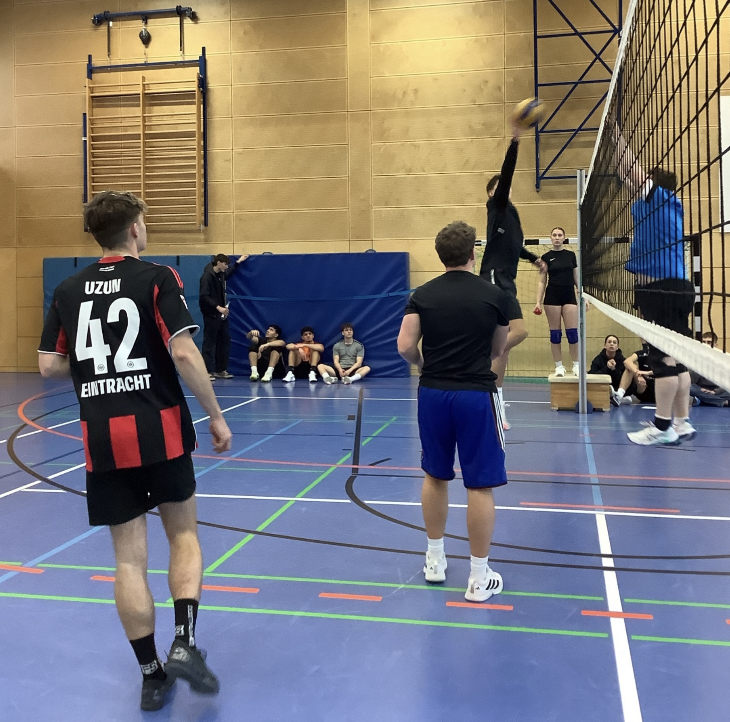 Am Laubach-Kolleg gingen am vergangenen Mittwoch beim traditionellen Volleyballturnier des Fachbereichs Sport fünfzig aktive Sportlerinnen und Sportler in zehn Mannschaften an den Start. Oberstufenschülerinnen und -schüler, Ehemalige des Kollegs, ein Gast-Team der Gesamtschule Mücke („Die stechenden Mücken“) und das Lehrerteam „Netzbeißer“ spielten in der schuleigenen Sporthalle mit großem Engagement und viel Spaß ein spannendes Turnier.
